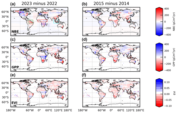 Gli scienziati hanno scoperto che l’aumento dei livelli di anidride carbonica osservato nel 2023 è associato principalmente alle emissioni delle aree tropicali e dai vasti incendi che colpirono il Canada nell’estate 2023. Allo stesso tempo, commentano gli autori, l’analisi sembra suggerire che le temperature più elevate nell’Amazzonia orientale siano alla base della riduzione dell’assorbimento netto di anidride carbonica in quell’area, mentre cambiamenti nell’umidità del suolo o nella quantità di pioggia siano stati più importanti in altre zone tropicali.